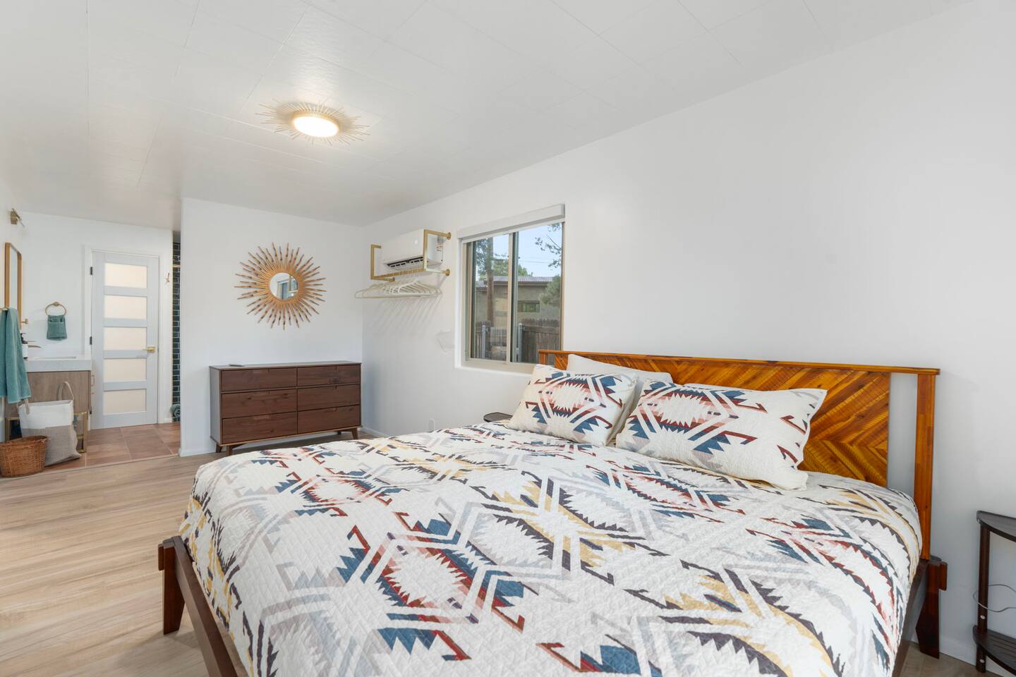 You have access to the full property with two separate living areas, large back yard, private studio and patio area, and parking for 7+ cars if needed. If you want to book a smaller space, click on our profile for separate listing for the studio (Sedona Oasis) or just the main house (Sedona Sanctuary). For the main house, the door code will be sent via Airbnb app automatically (last four digit of your phone #), and the door has a electronic number pad to enter the house. The studio has a padlock in the front with a physical key; the code will also be sent via the Airbnb app, and should be the same for both locks. Just send us a message through the Airbnb app which is the fastest way to get in contact with me or any of our team members.